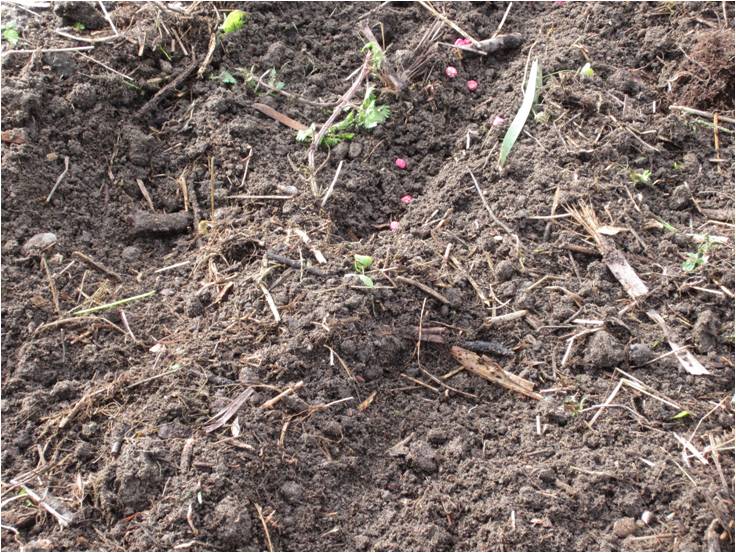 | Semear ervilhas. Depois de colocar as ervilhas no rego, tapa-se com cuidado. |